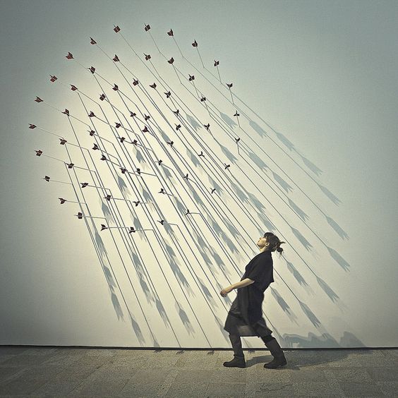 上海藝術展廳箭頭標識設計投影形成圖案導視。